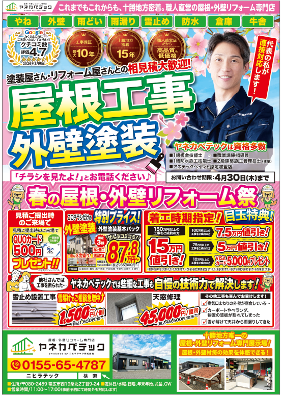 帯広市・芽室町・音更町・幕別町の屋根、外壁リフォームならヤネカベテック!