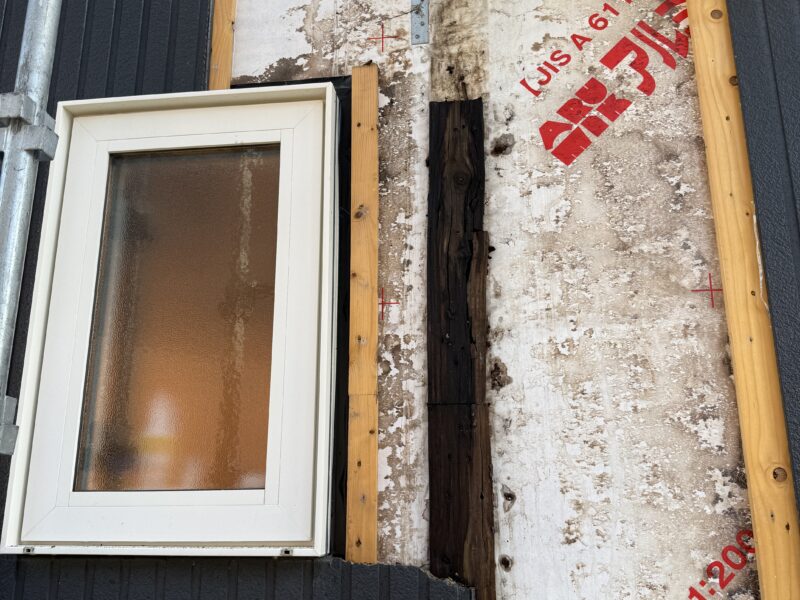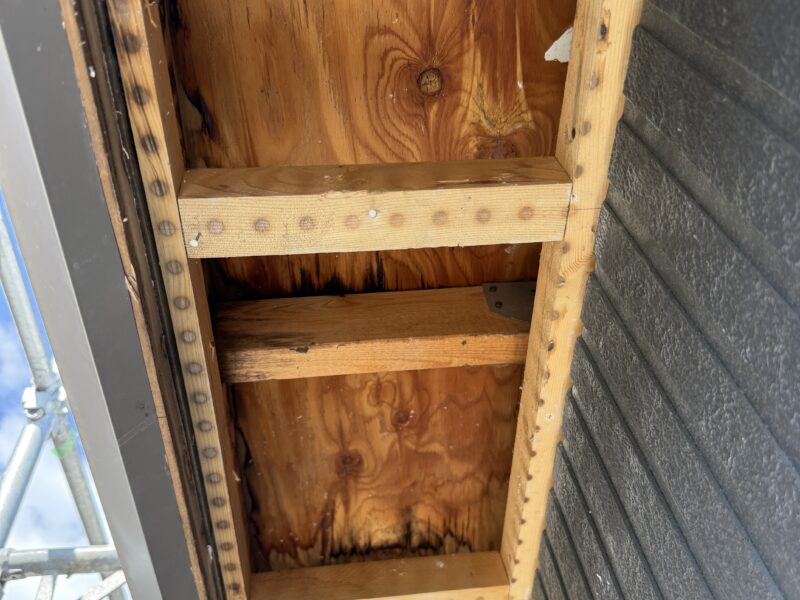 新築時の納まりが悪く、外壁側に雨だれが流れ込んでいるのが現地調査の時に発覚しました。