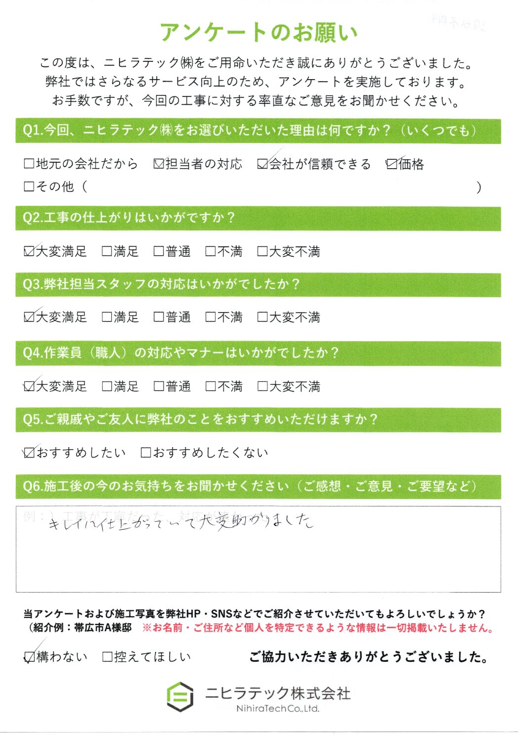 帯広市 H様邸 施工データ