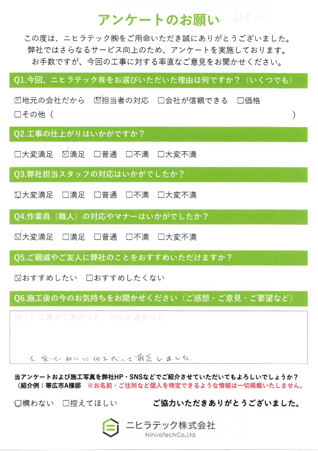 帯広市 HG様邸 施工データ