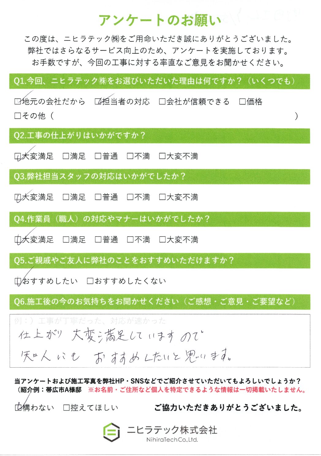 この度は弊社に工事のご依頼をいただき、誠にありがとうございました。