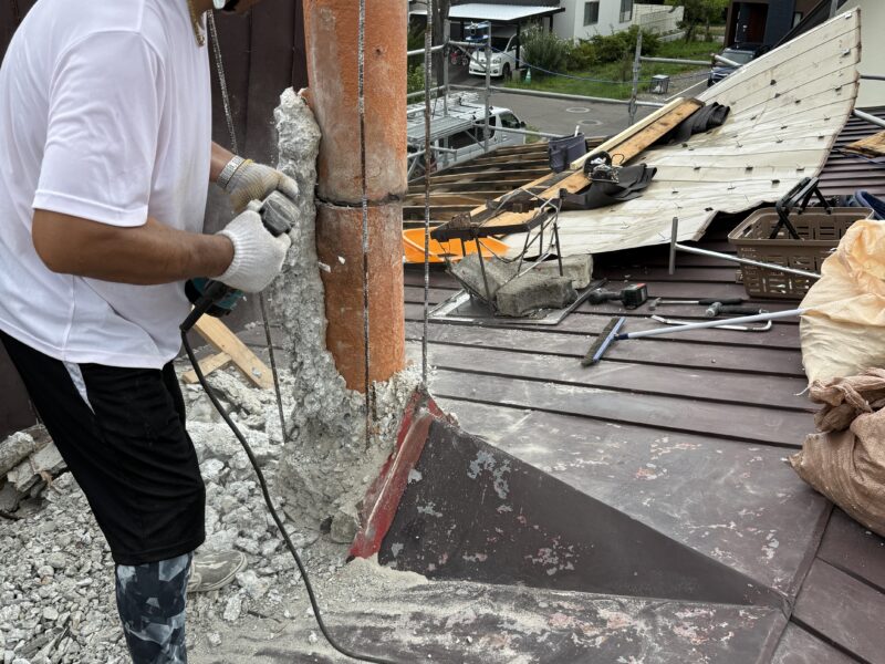 さて工事ですが、屋根が積雪で折れてしまっていて修復からのスタートでした。