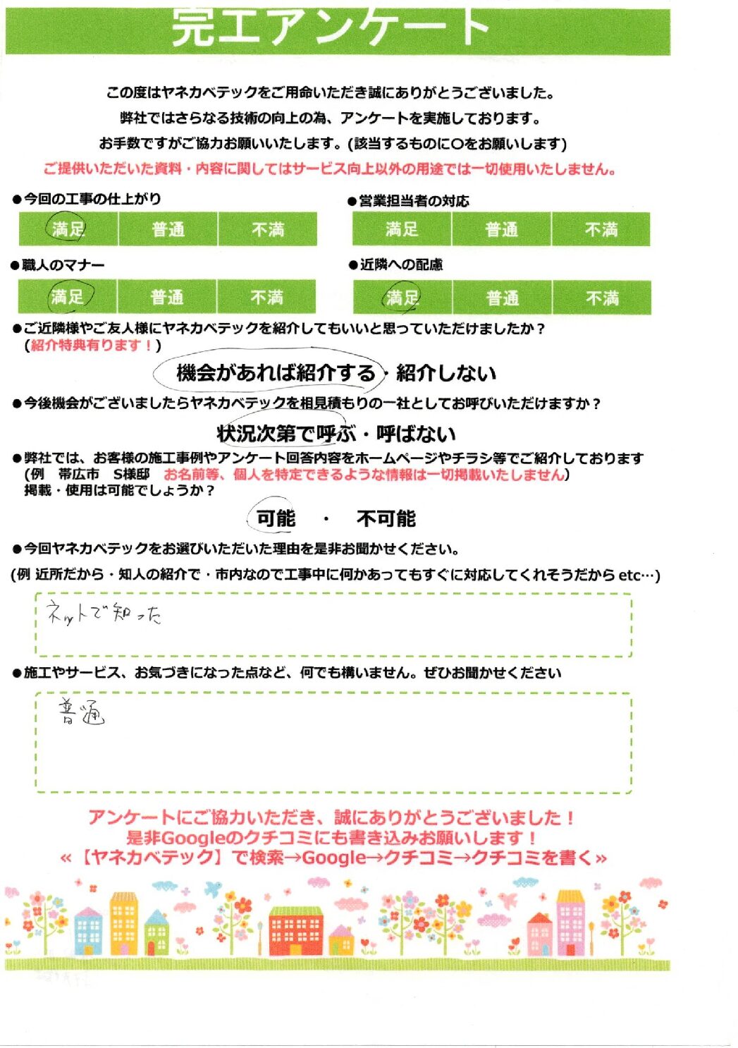 ホーム > 施工事例・お客様の声 > 大工工事 > 帯広市 SB様 雨漏り修理工事